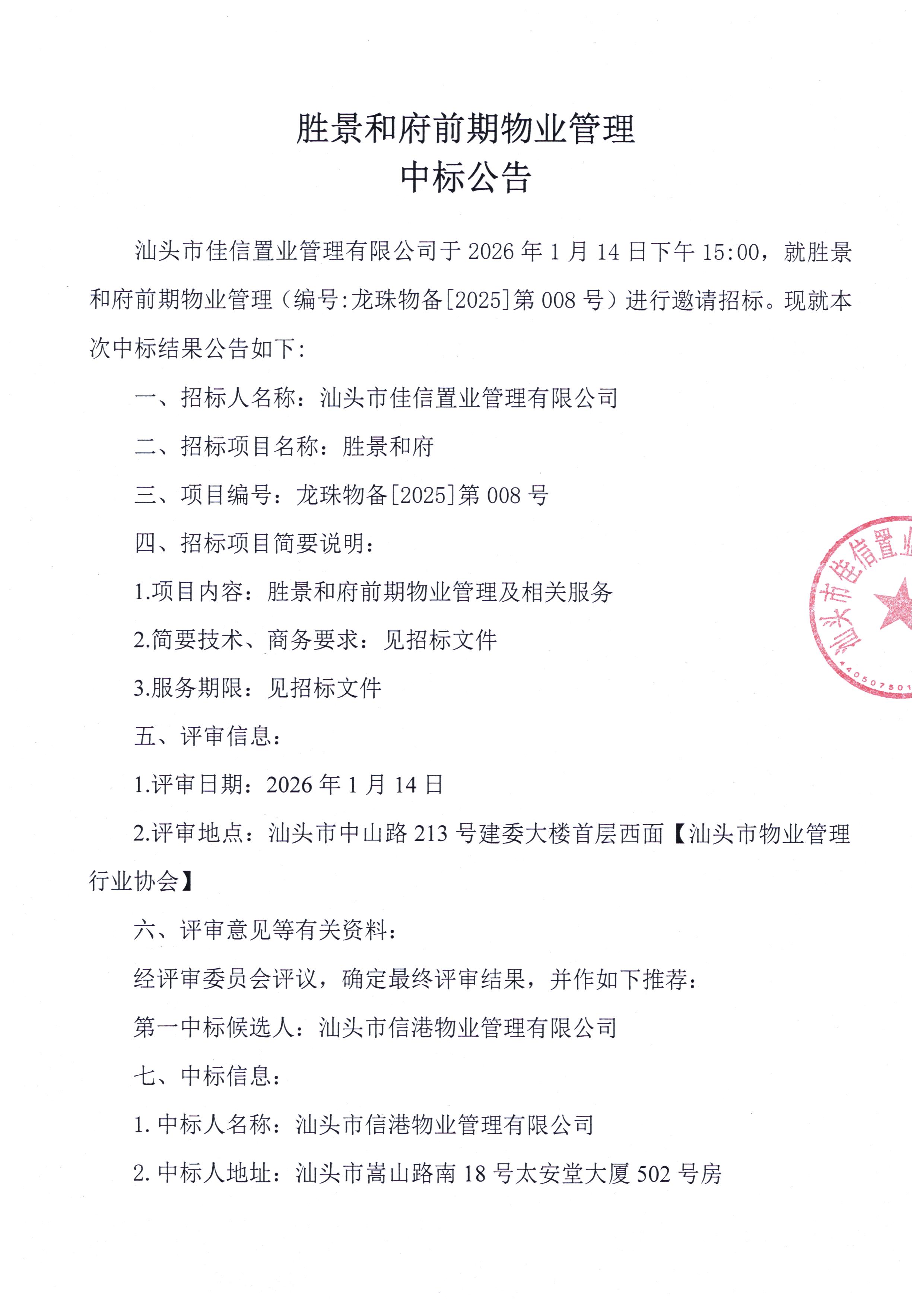 汕头市观悦府东区项目前期物业管理招标中标公告